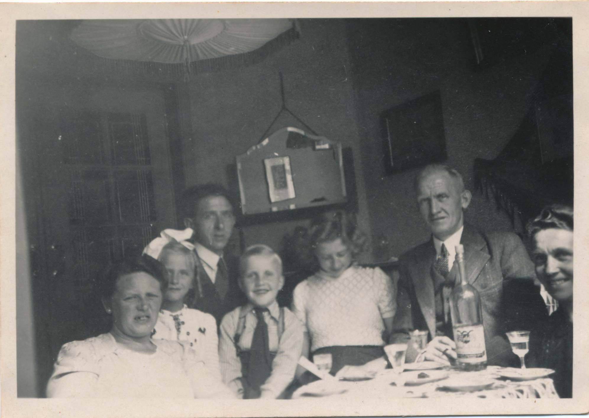 Een foto is binnen genomen, Tonnie staat niet op de foto dus ik neem aan dat zij hem gemaakt heeft. De foto zou gemaakt kunnen zijn bij de familie Kabbedijk in de achterkamer. Met name de lamp ziet er op foto’s van Beukstraat 30 (waar de familie Albert Benoist woont) anders uit. Bovendien lijken de muren leger en witter.
