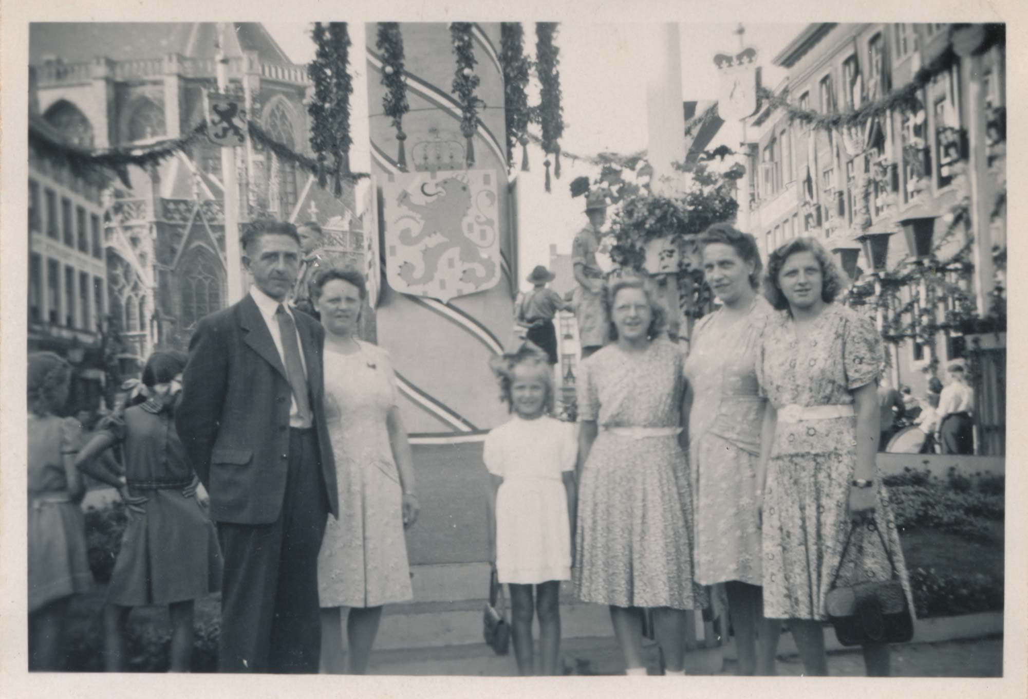 Dat dit de Jubileumfeesten betreft kun je zien als je de zuil vergelijkt met de zuil of deze foto uit het archief. Al is deze wel van de andere kant gemaakt.
