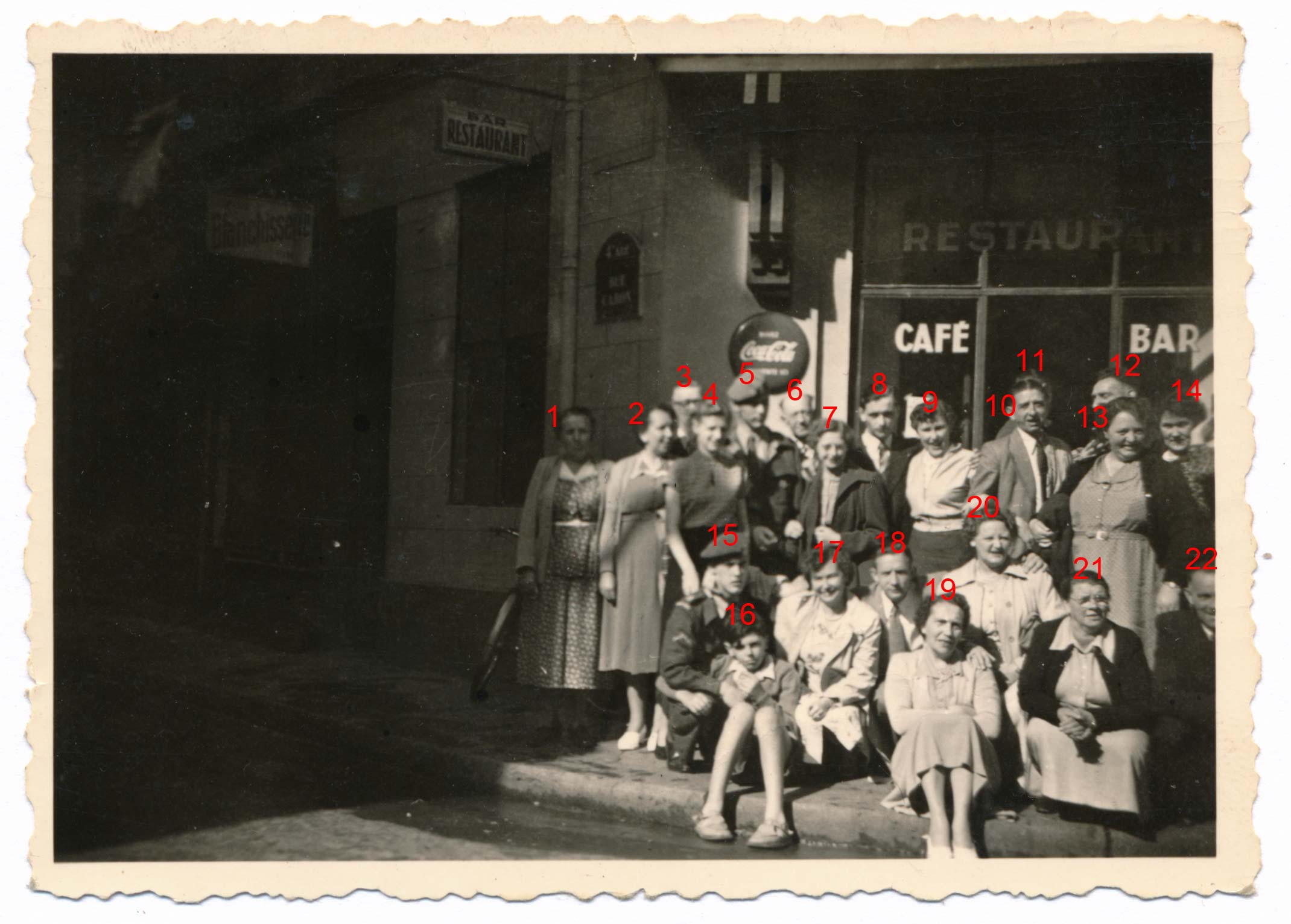 12. Corrie In de weij 13. Mevr. van Gennip 14. Maria Renard-Michielsen (moeder van Bernard Renard) 15. Bernard Renard 16. 17. Emmie In de weij 18. Leo Uitendaal (man van Emmie Renard) 19. Adriana Kabbedijk-Looyens 20. Adriana/Sjan Benoist-In de weij 21. Mevr. Farla 22. Willem Kabbedijk |
