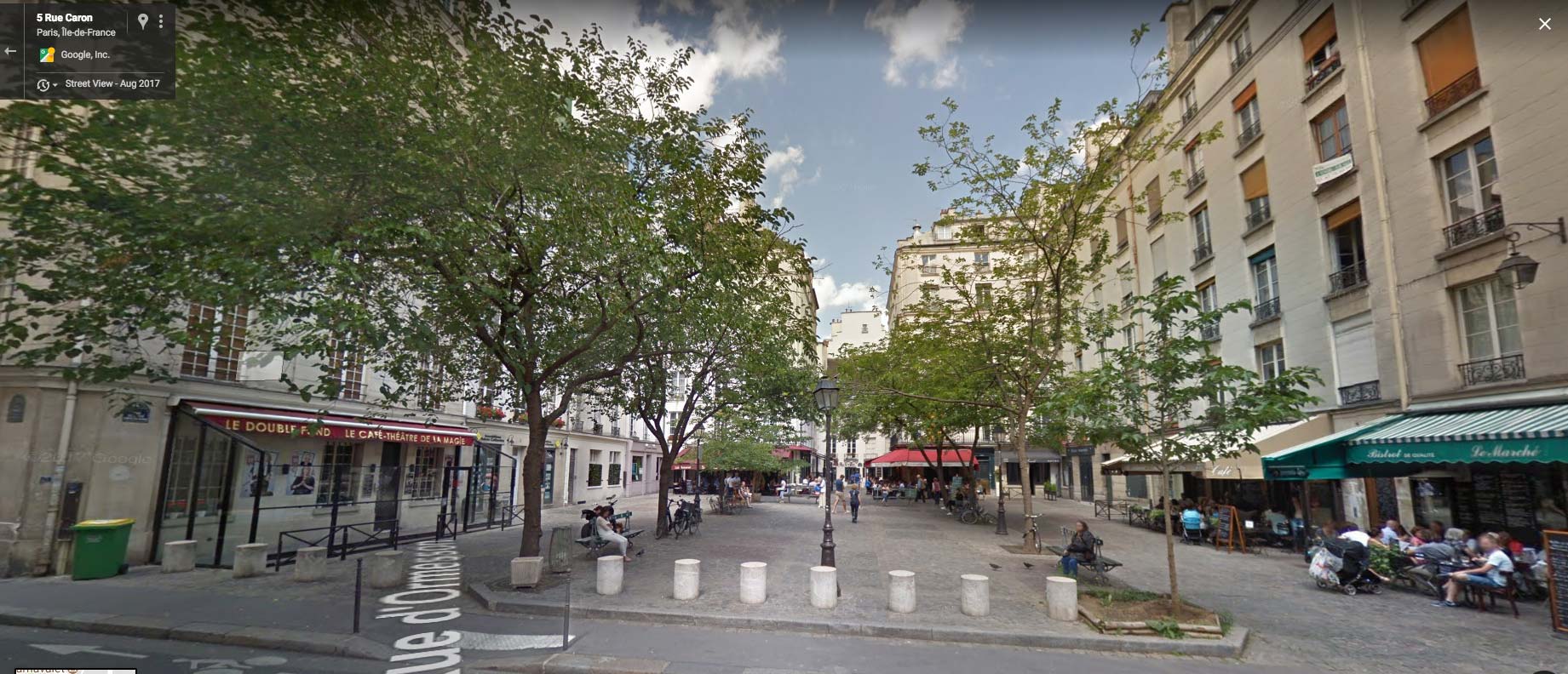 De foto is gemaakt op de hoek van de Rue Caron en Rue d’Ormesson tegenover het plein Place Sainte-Catherine in Hôtel-de-Ville, het 4de arrondissement, van Parijs. De naam Sainte-Catherine verwijst naar een klooster dat aan het plein lag tot halverwege de 18de eeuw.