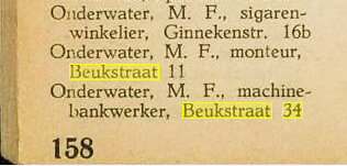 In het adresboek van Breda van 1947 wordt als bewoner van Beukstraat 34 vermeld M.F. Onderwater, machinebankwerker.