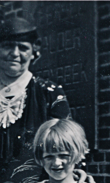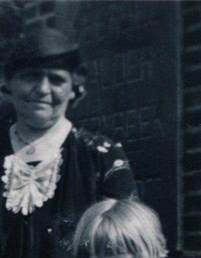 Op de foto staan naar Tonnie en Corrie hun ouders Albert en Adriana Benoist. De twee vrouwen die erbij staan worden in het fotoalbum niet genoemd. Het is een gok maar ik vermoed dat de oudere vrouw Agatha Johanna Vervaart is, de stiefmoeder van Adriana en mogelijk een van haar ongetrouwde dochters, misschien Corrie, die later met Roelf van der Vlag trouwt. Na het scannen van de foto’s zie ik dat er op de foto waar Albert niet op staat op de sokkel achter de oudere vrouw letters staan.