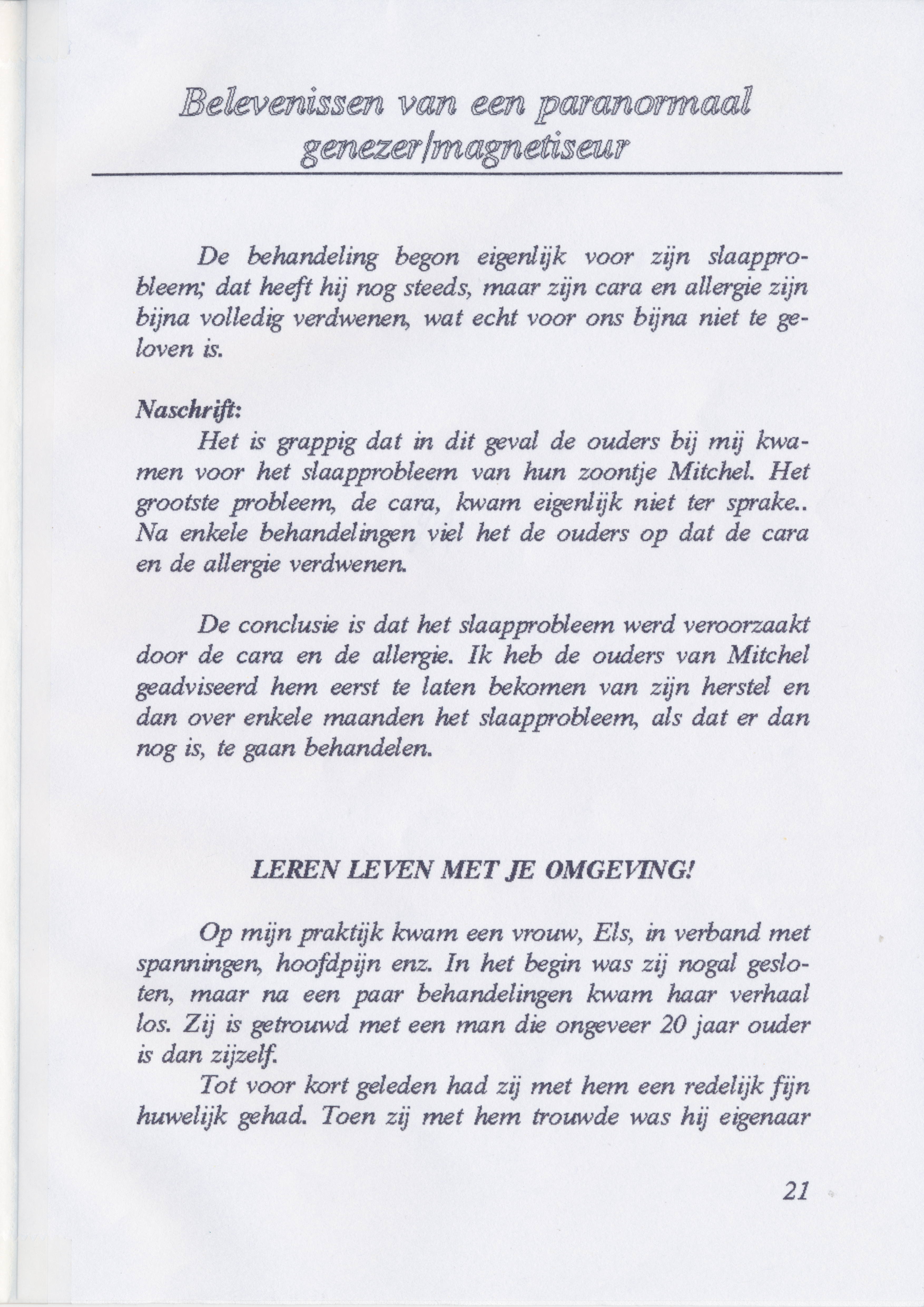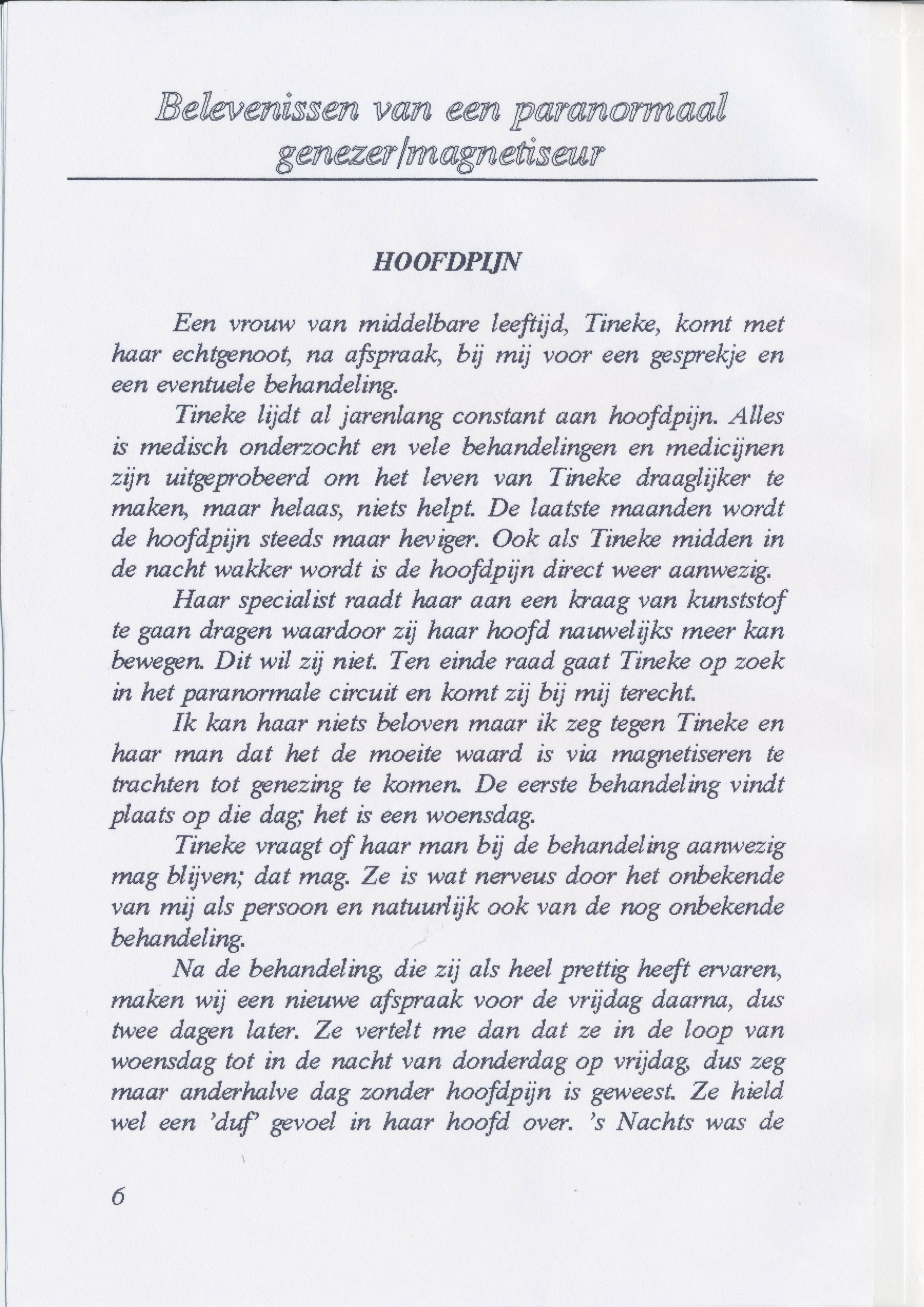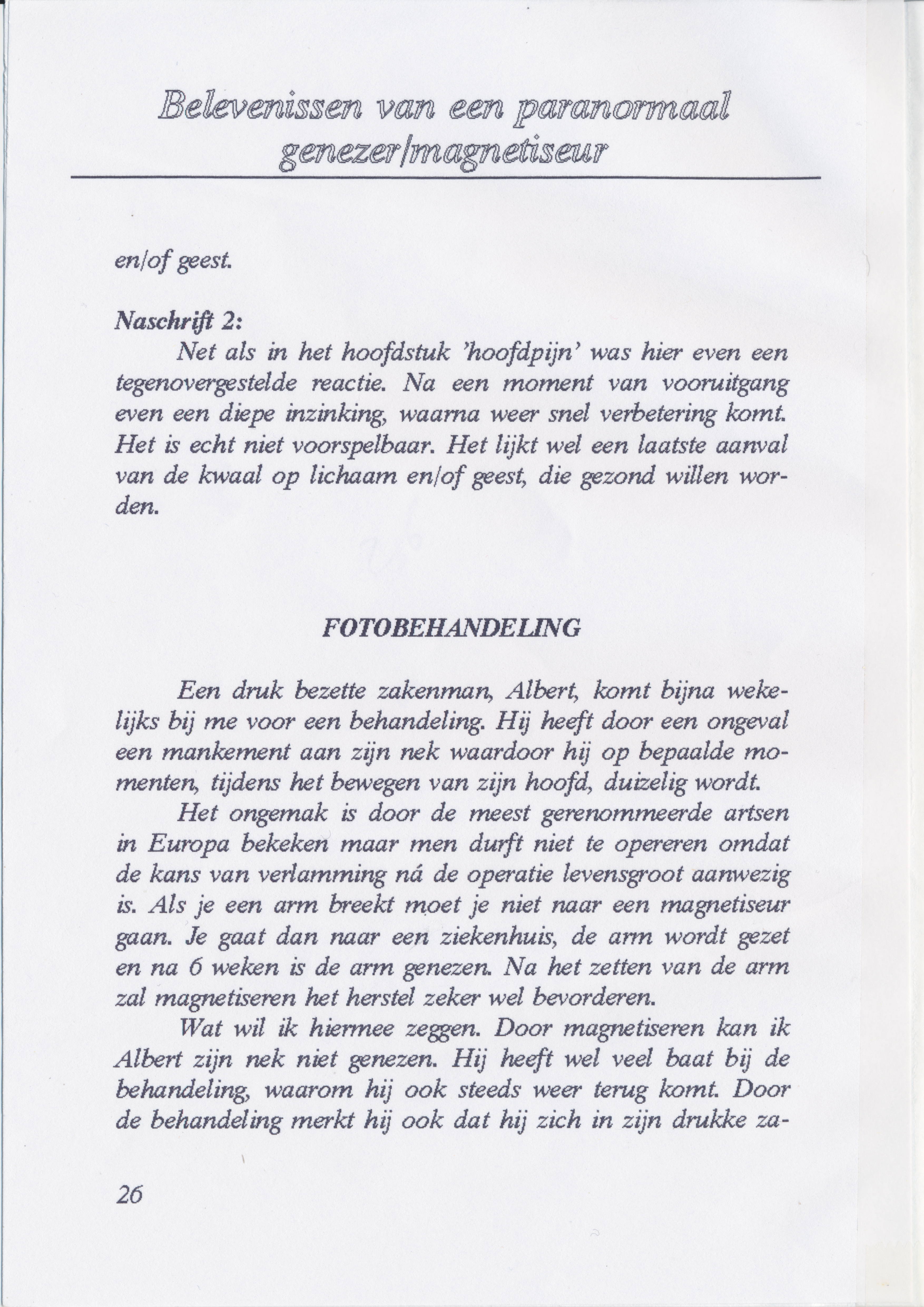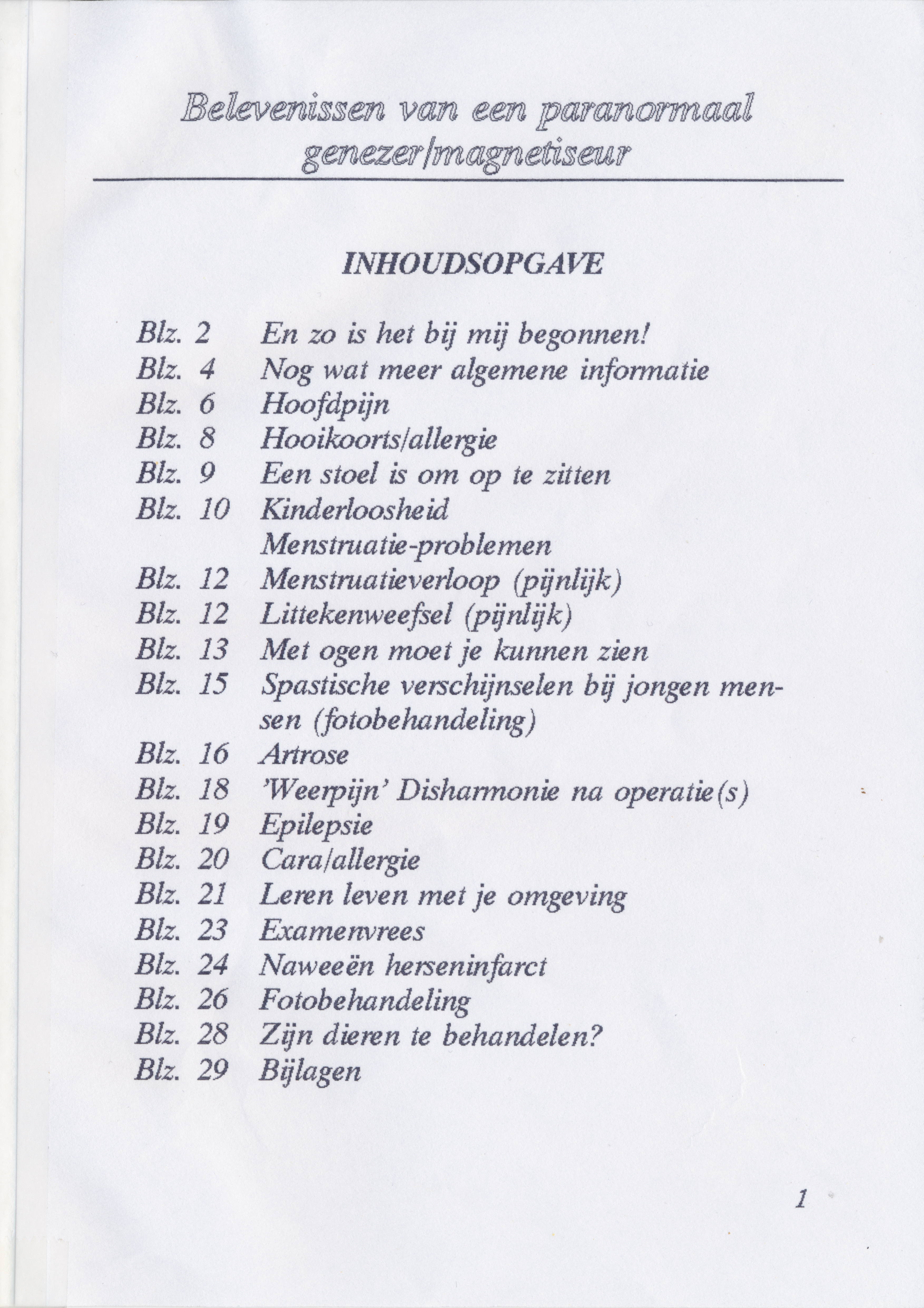 Hij schreef een boekje over zijn ervaring als genezer waarin hij verteld hoe het is begonnen en een aantal voorbeelden van behandelingen uit zijn praktijk beschrijft.
