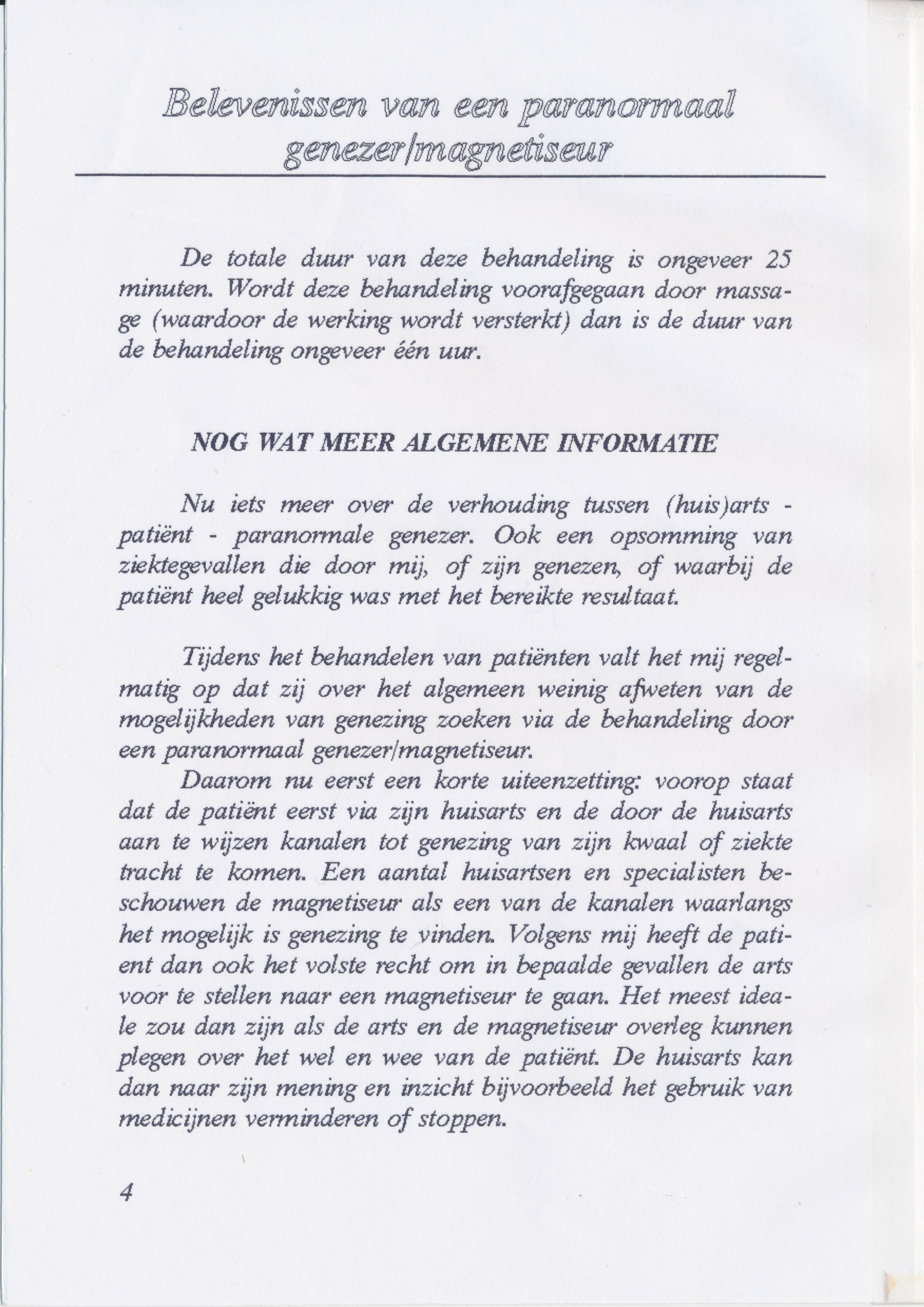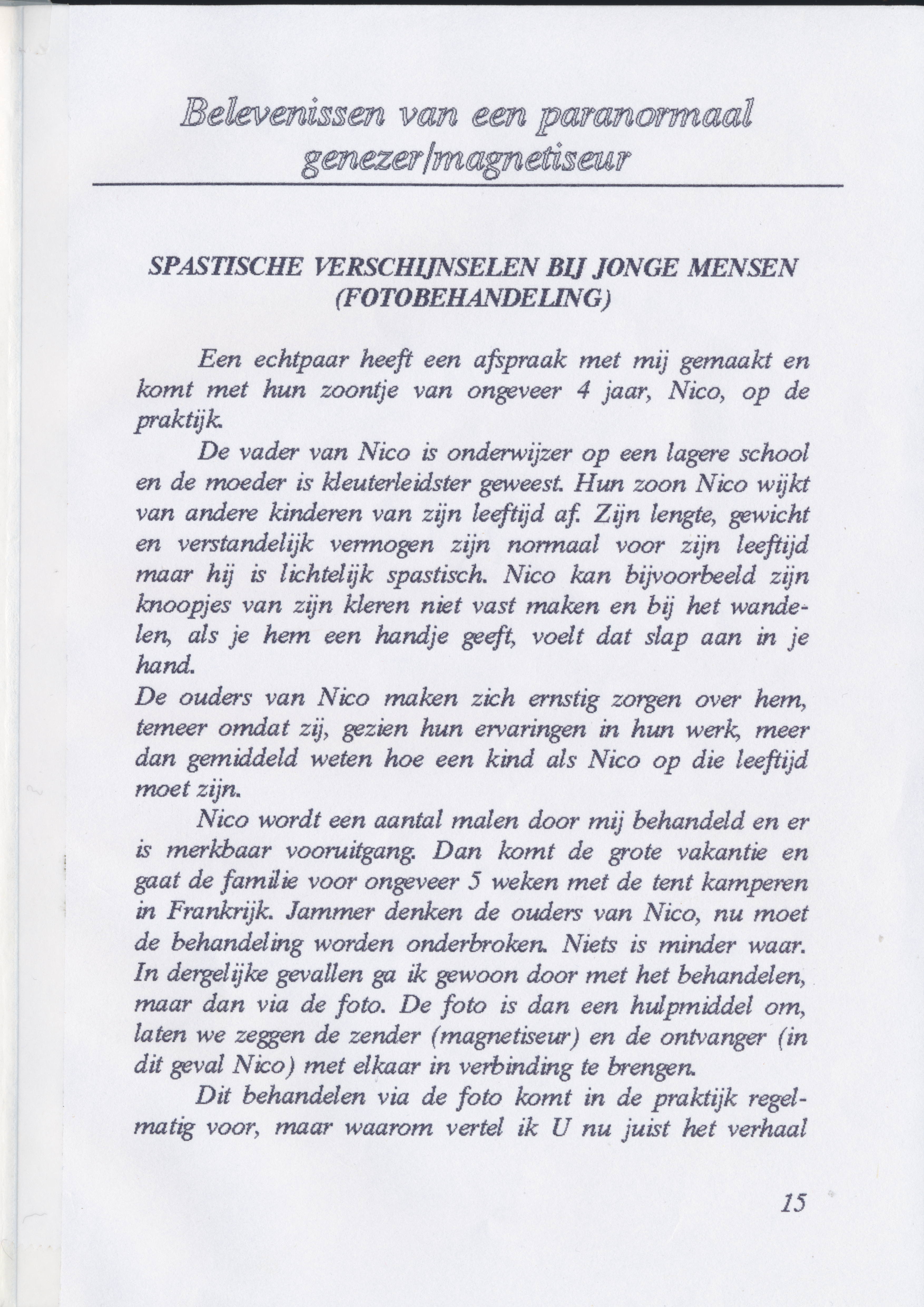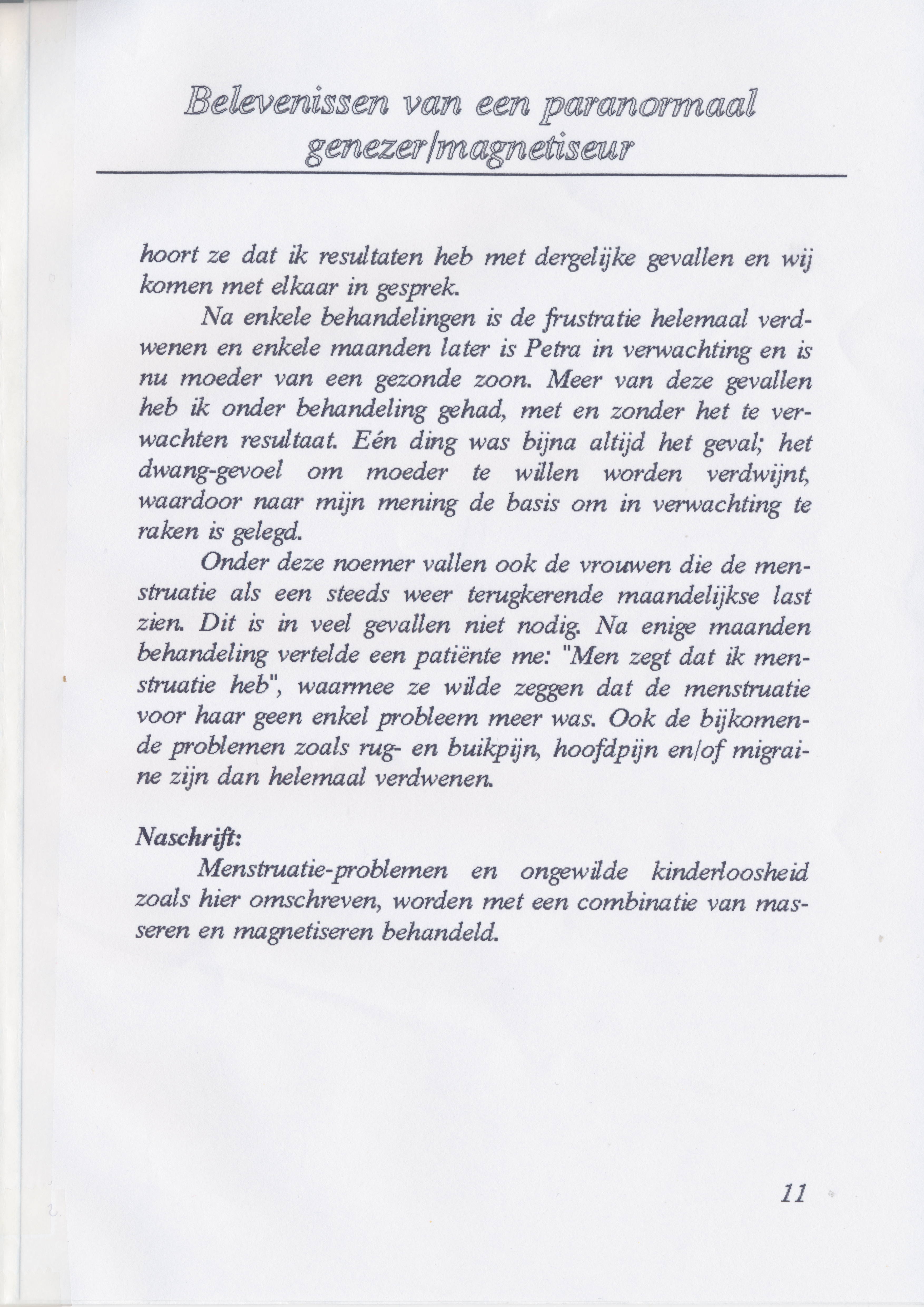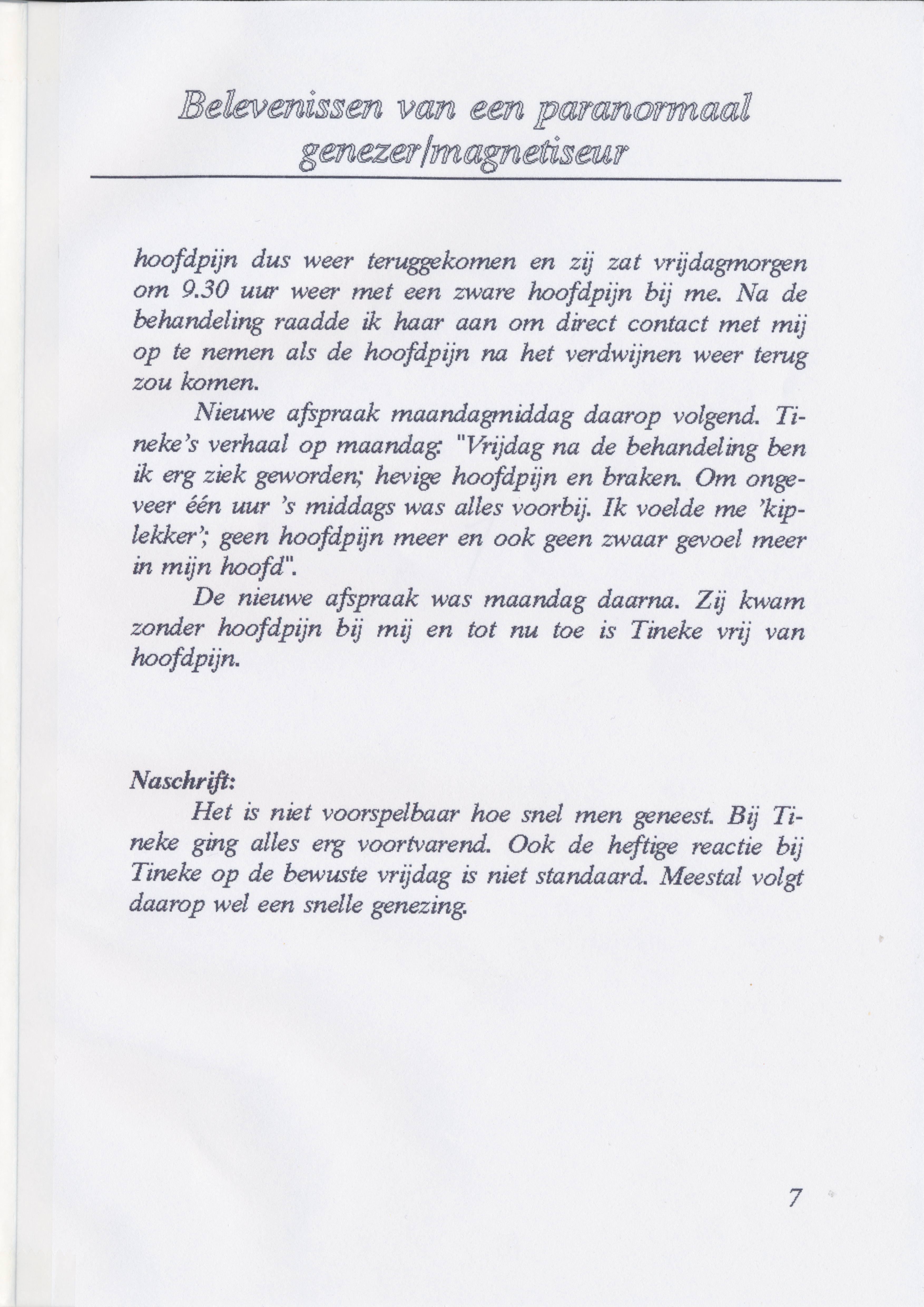Hij schreef een boekje over zijn ervaring als genezer waarin hij verteld hoe het is begonnen en een aantal voorbeelden van behandelingen uit zijn praktijk beschrijft.