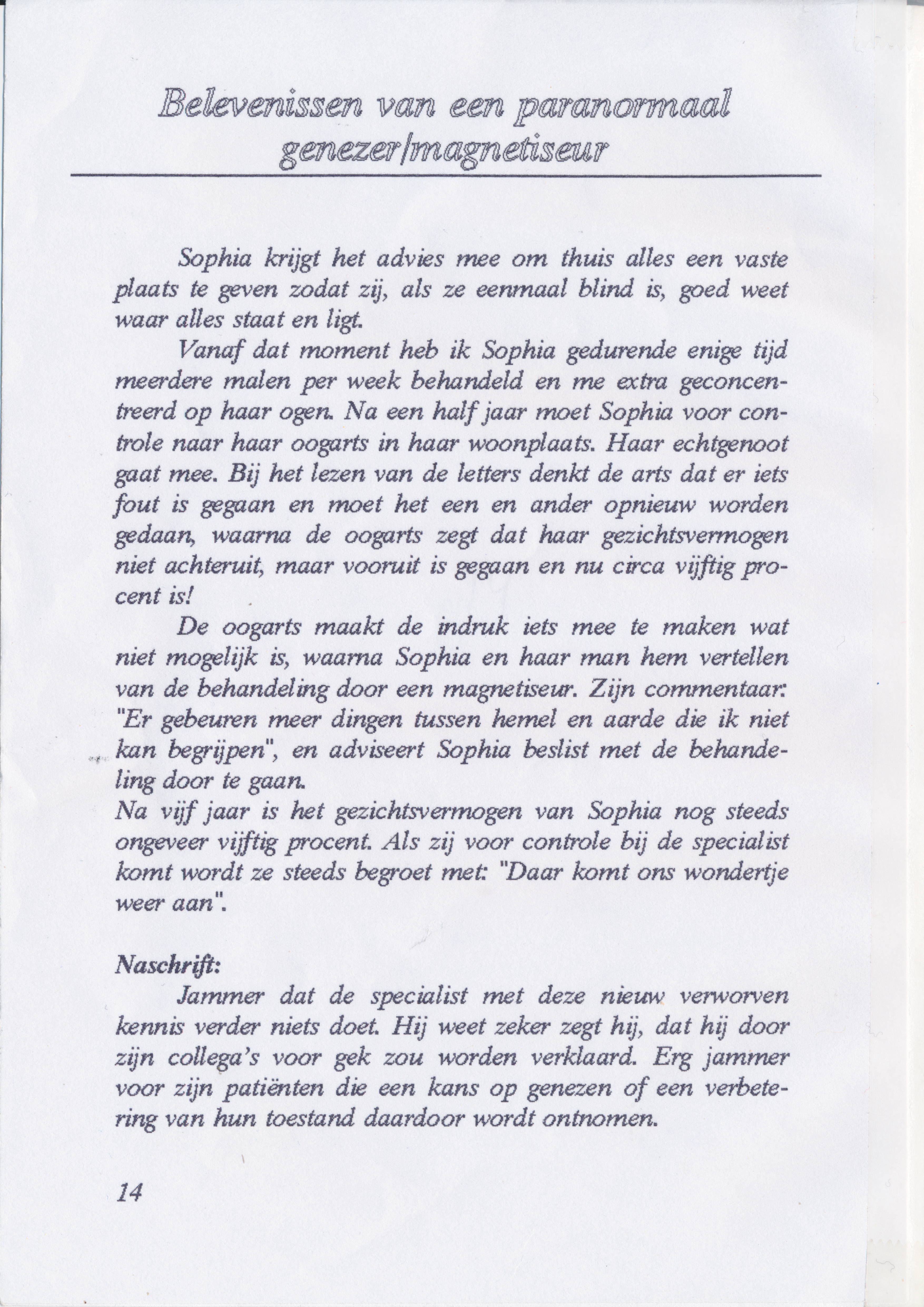 Belevenissen van een paranormaal genezer