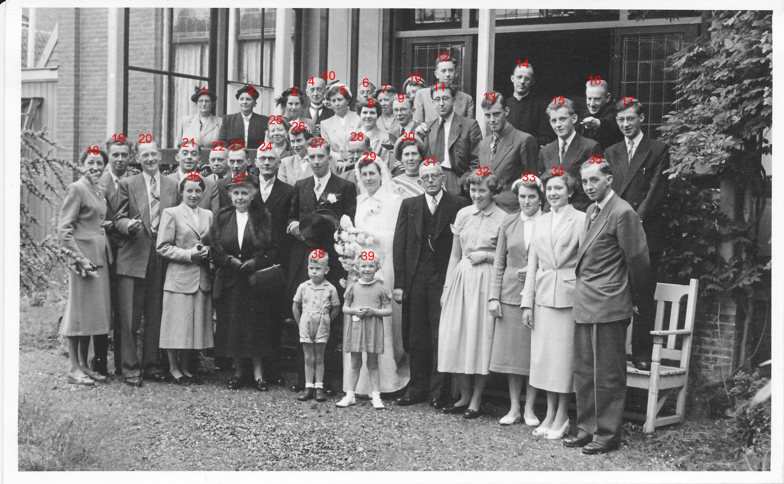 21. Martien de Rooij 22. 23. Henk de Rooij 24. Jan van der Linden 25. 26. Tiny ?. (ev Henk de Rooij) 27. Bob de Rooij 28. Jan de Rooij 29. Ria de Rooij-van der Linden 30. Ann Koning-van der Linden 31. Martinus de Rooij 32. Angeline de Rooij 33. Miep ? (ev. Martien de Rooij) 34. 35. Kees de Rooij 36. Ina Westerhof 37. Maria van der Linden-Karskens 38. Jan Koning 39. 30. |